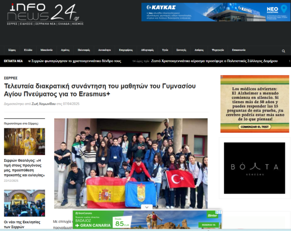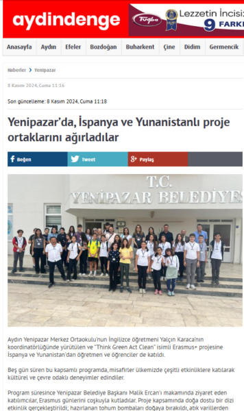 3rd mobility in Greece: Representation in Local and National Media https://www.sch.gr/gymnasio-agiou-pnevmatos-serron-erasmus-think-green-act-clean-3i-kai-teleftaia-diakratiki-synantisi https://infonews24.gr/2025/04/07/teleytaia-diakratiki-synantisi-mathiton-gymnasioy-agioy-pneymatos-to-erasmus/ https://aveserres.gr/serres-gymnasio-agioy-pneymatos-serron-erasmus-think-green-act-clean-fotoreportaz https://www.facebook.com/share/p/1AGUFy5dYx. : Municipality Emmanouil Pappa https://www.facebook.com/share/p/1JWT8Pb7fc : ENEEGYL (Junior High School for students with special needs)